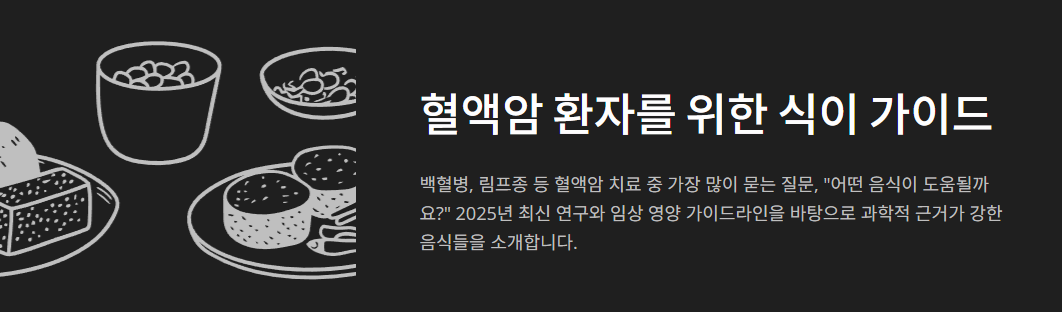 혈액암 치료 중이거나 관리 중이신 분들께 가장 많이 묻는 질문 중 하나가 바로 "어떤 음식을 먹으면 도움이 될까요?"입니다.