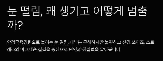 - 눈 피로 (디지털 피로) → 스마트폰·컴퓨터 장시간 사용으로 눈 근육 긴장 → 떨림