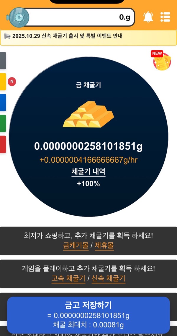 아무런 조작 없이 자동으로 금을 채굴해주는 리워드 앱입니다. 채굴된 금은 실물 금으로 교환하거나 다양한 기프티콘으로 바꿀 수 있습니다!