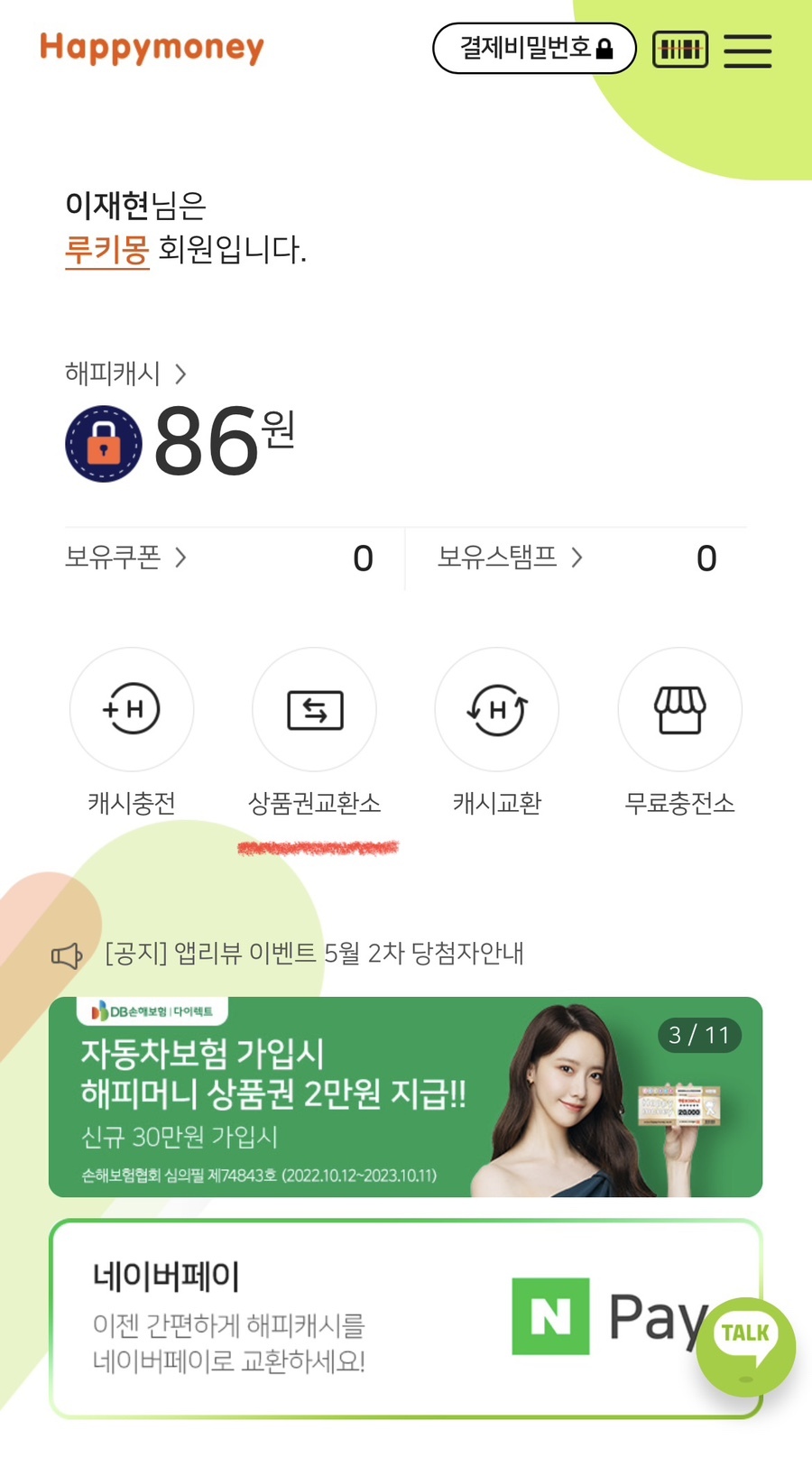 6. 메인화면에서 밑에 네이버페이 배너를 클릭 , 상품교환소 클릭